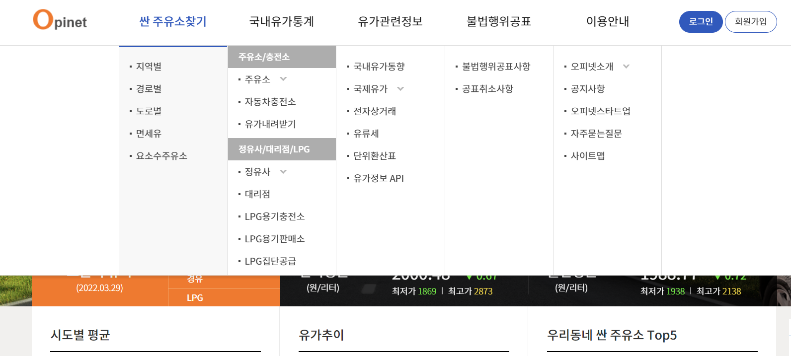 싼 주유소 찾기 오피넷